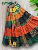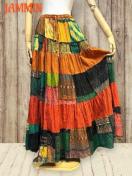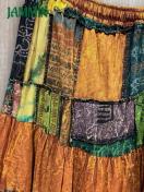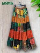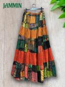 色々な色柄のアジアン柄生地を使ったパッチワークフレアスカートです。