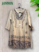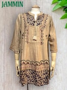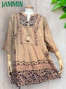 刺繍やろうけつ染め、コードレースなどが使われたアジアンなチュニックです。