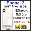 B 100% iPhone 12 128 GB ホワイト SIMフリー 本体