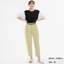 すっきりとした腰周りを演出するタックと、トップスに合わせやすい緩やかなテーパードラインが魅力。
