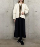 ゆったりしたサイズ感なので、中にニットを着てもキツくないサイズ感。スカート でもパンツでも合わせやすい丈感なので、コーディネートにサッと1枚羽織って頂けます。