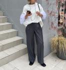 ゆったりとしたシルエットとやや広めの襟元デザインで、甘くなり過ぎず抜け感のある印象で着ていただけます。