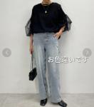 すっきりとしたタイトスカートを合わせると、メリハリのある女性らしいコーディネートを楽しめます。透け感があるチュール素材があしらわれているため、デニムと合わせてもカジュアルになり過ぎずに着こなせるのもポイントです。