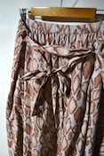 たくましく美しい大自然の動物たち。彼らからインスピレーションを受けデザインされたアニマル柄スカート。アフリカではそれぞれの動物が象徴する意味を持ち、称えられているのだ。ウエストリボンの先にある、遊び心をくすぐる刺しゅうがアクセント。大自然をさらりと纏い、毎日を思い切り楽しもう。