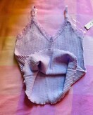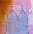 スカラップヘムデザインのキャミソール、ストレッチ素材で快適な着心地。
