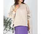 ふつう見えしてしまう無地のカットソーを、裾や袖のデティールにこだわって1枚でもお洒落見えするデザインに仕上げました。