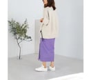 ゆったりとしたシルエットながら、素材感とフォルムで女性らしさを演出。