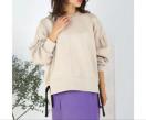 ゆったりとしたシルエットながら、素材感とフォルムで女性らしさを演出。