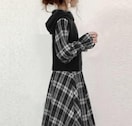 ┗重ね着風のデザインが魅力のチェック柄ヘムラインパーカーワンピース