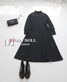 ┗上品なプリーツのロングワンピース