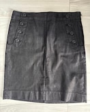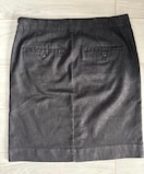 ストレッチデニム素材のボタン付きミニスカート、色はダークグレー、サイズ1。S〜M