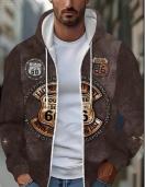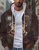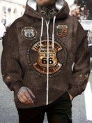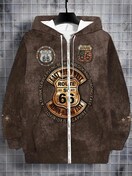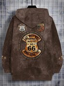 メンズ ビンテージ ルート66 フード付きジャケット - 秋/冬のアウトドアアドベンチャー&カジュアルウェアに最適な、引き絞り付きの長袖ジップアップジャケット、ドローストリング、ポケット、レトログラフィックプリント付きの快適な服 | ビンテージスタイルジャケット | 耐久性のあるアウトドアジャケット