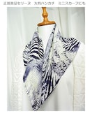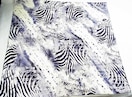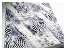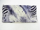 **アイボリー(クリームがかった白)**をベースに、ネイビー(濃紺)と薄いラベンダー/グレーのような色合いの抽象的なアニマル柄(ゼブラ柄など)がプリントされています。