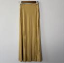 伸縮性のある肌触りの良い上質な素材。ベージュのフレアスカート、スリット入りデザインです