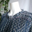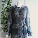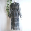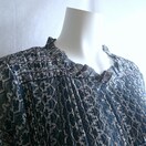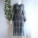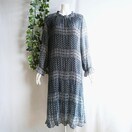 フリル襟と花幾何学柄が優雅な上質プリーツワンピースです。