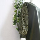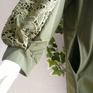 後ろにはファスナー、袖はふんわりとしたデザインで優雅さをプラス。