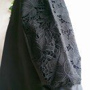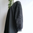 後ろにはファスナー、袖はふんわりとしたデザインで優雅さをプラス。