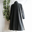 ゆったりとしたハイネックに飾りボタンを添えて、顔まわりを上品に引き立てます。