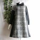 上質ツイードと起毛ニットソー、カットソーを組み合わせた贅沢な異素材切替ワンピースです。