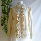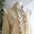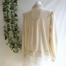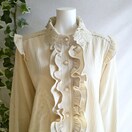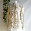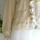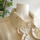 優雅なフリルと華やかなクロシェ刺繍が魅力のコーデュロイ風ブラウスです。