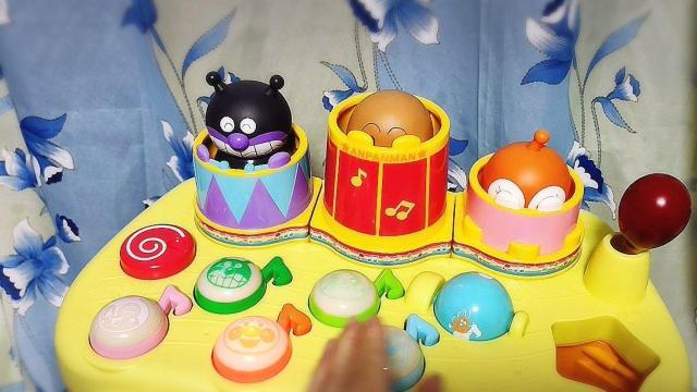ボタンを押せば音楽に合わせてバイキンマン、アンパンマン、ドキンちゃんが出てきて、子どもは大喜び