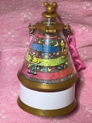 ワールドバザール中央に登場したセレブレーションタワーのデザインで【35th Happiest Celebration】のロゴと歴代ミッキーのイラストがプリントされています。