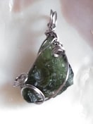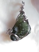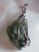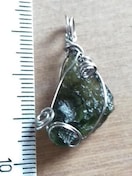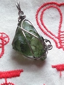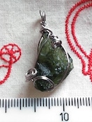 ステンレスワイヤーでモルダバイト原石を巻いてみました。ワイヤーワークは最近試しに初めてみたばかりなので、適当な感じではありますが、石が落ちることはないと思います。