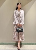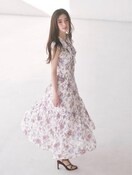 程よく大きめなサイズ感のオリジナルフラワー柄プリントが華やかなシフォンプリーツワンピースがお目見え。胸元には、レースアップデザインと、ドレープを利かせた大きなフリルデザインを加えて今季らしく仕上げました。フリル端にはピコレースを施して抜かりなく華やかに。前身頃のピンタックと、スカート部分の細かめのプリーツで上品ながらも立体感をプラスしました。ノースリーブの袖口にもフリルを施し、さりげなく気になる肩周りを隠します。背中側はゴムシャーリングを加えて、2本の細リボンを配置。シルエットを調節してご着用いただけます。キャミソールワンピ付きです。サイドのファスナーで着脱いただけます。