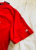 このchampionの半袖Tシャツは、鮮やかなレッドカラーが印象的で、スポーティーな印象を与えます。
