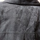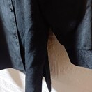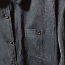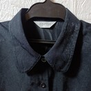 表示は11号ですが大きめです。サイズ参考にしていただければわかると思いますが、通常のLL位の方でも大丈夫だと思います。両サイドスリットあり、さりげなくピーチ起毛で光沢があり、真っ黒ではなく、良く見るとパイソン風の柄があります。肩パッドあり、左胸ポケット付きでスタイリッシュなオーバーシャツです