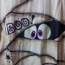 Boo!の文字と目が描かれたマミー風(ミイラ)デザインで 大きな目とスパイダーのイラストが特徴的です。