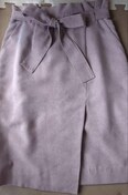 スエード風タイトスカート、ウエストリボン付きでスタイリッシュ。