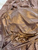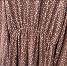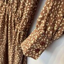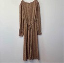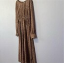 ブラウン系、ココアのような優しい色です。テロテロ素材の長袖マキシワンピース。