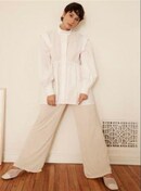 薄いベージュ(アイボリーよりです)なので、何にでも合わせやすく、写真のように