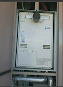 TOHO GAS製のガス給湯器で、複数の接続口を備えています。