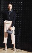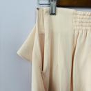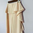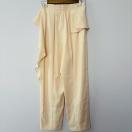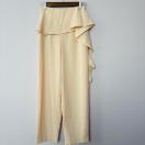 ハリ感のある素材を活かし、ウエストにはペプラムの様なフリルと、脇に流れるフレアのデザインパーツをあしらったデザインパンツ。