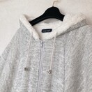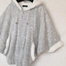 フード付きの柔らかいニットポンチョ、ボア裏地で暖かい。