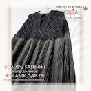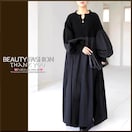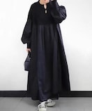 ┗ぽわん袖が印象的なニットドッキングロングワンピース