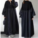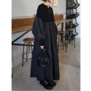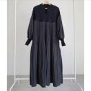 ロング丈ニット切り替えプリーツワンピース