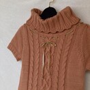 - デザイン: ハイネック、ケーブル編み、リボン付き