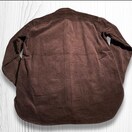 コーデュロイ素材を使用しており、温かみのあるブラウンカラーが特徴です。胸ポケットが付いており、実用性も兼ね備えています。ゆったりとしたシルエットで、リラックスしたスタイルを演出します。