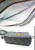 落ち着いたグレーにゴールド金具が映える大人の雰囲気。
