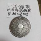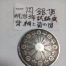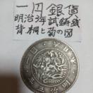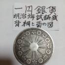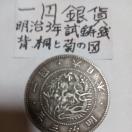 明治3年銘柄の一円銀貨になりますけどこちらは背の図柄が変わっています、桐と菊の図になっております、試鋳銭かと思います画像をよくご覧いただきご確認の上ご応募宜しくお願い致します。締切日時