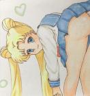 自作イラスト/セーラームーン/月野うさぎ/セーラー服/パンチラ/ハガキ/難あり/送料無料です。