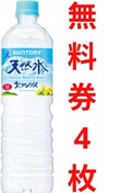サントリーの天然水1Lボトル1(計4)本と10/28?11/3まで全国ローソン店舗で交換できる無料券4枚
