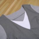 Vネックの衿元にはレイヤード風に別色の生地を内側に使用しています。