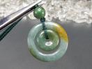●濃い緑色紐ネックレス 全長約62センチ 調整可能タイプ