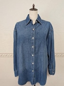 あえて胸ポケットをなくしたシンプルなデザインの大人っぽいデニムシャツです。