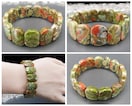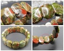 グリーン色のベースに天然の赤色、グレー色、薄い緑と濃い緑の柄が入っています。