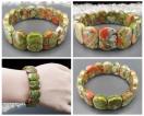 グリーン色のベースに天然の赤色、グレー色、薄い緑と濃い緑の柄が入っています。